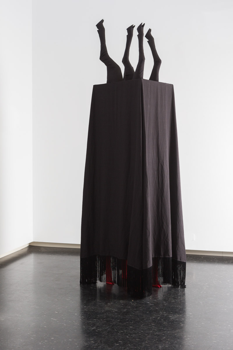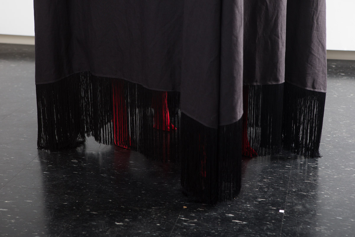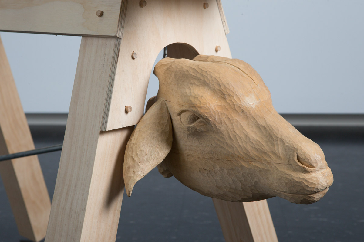 Wake up, my goat, fabric, tassels, flywire, fibreglass, fixings, timber, plaster, 250 x 60 x 45cm, 2013