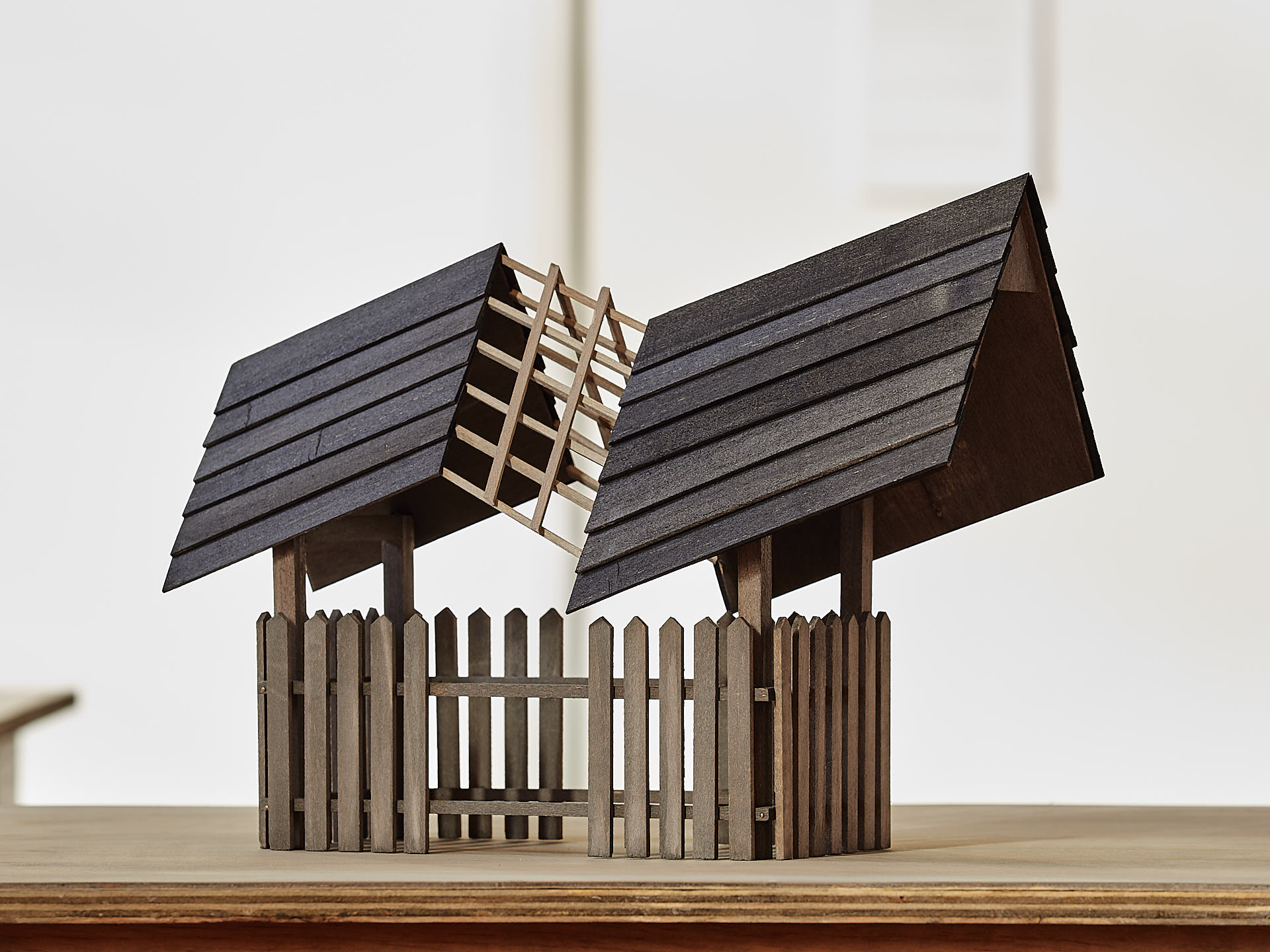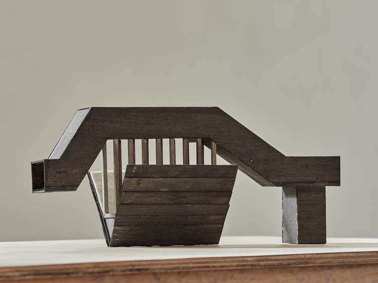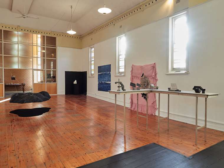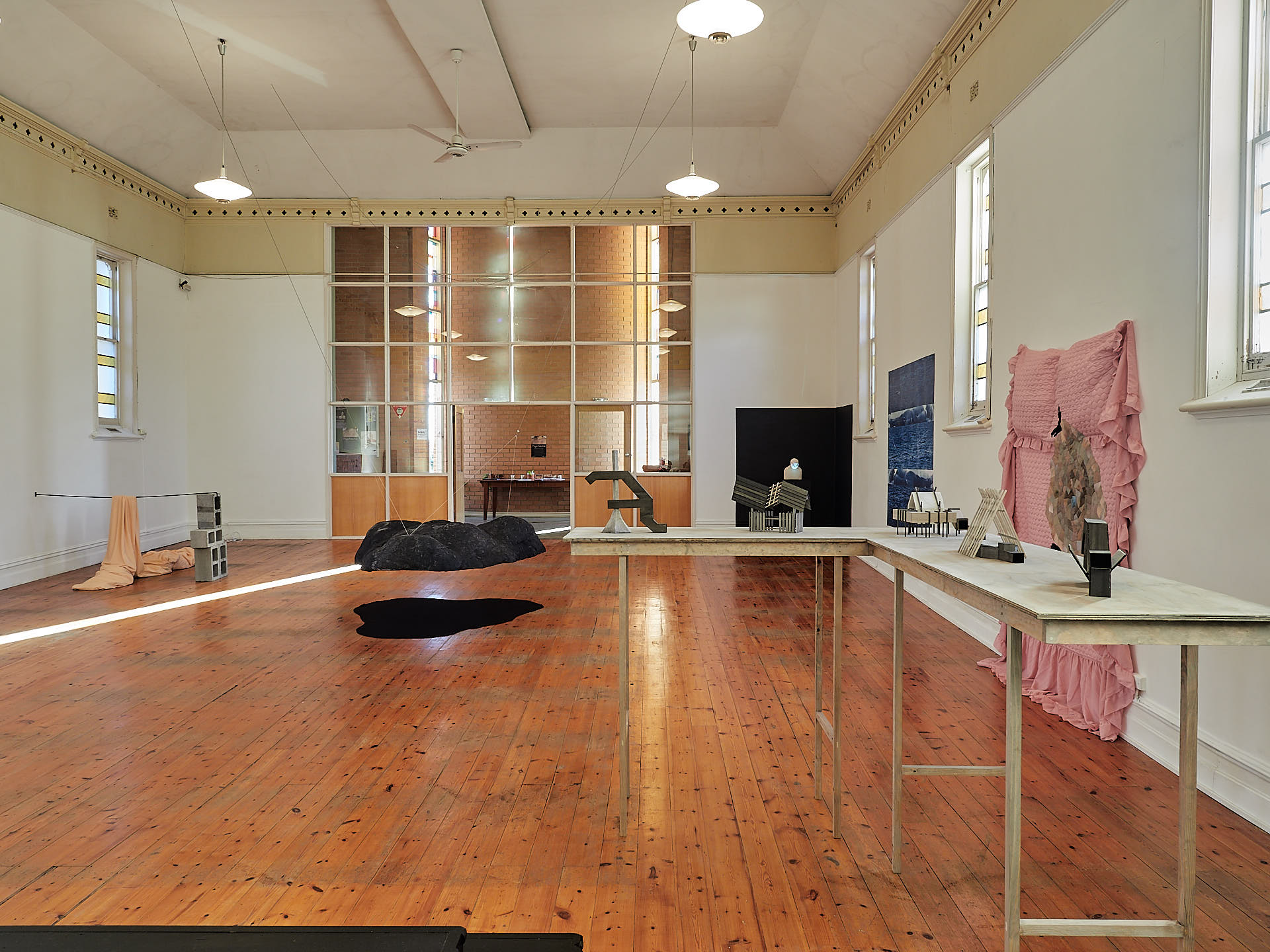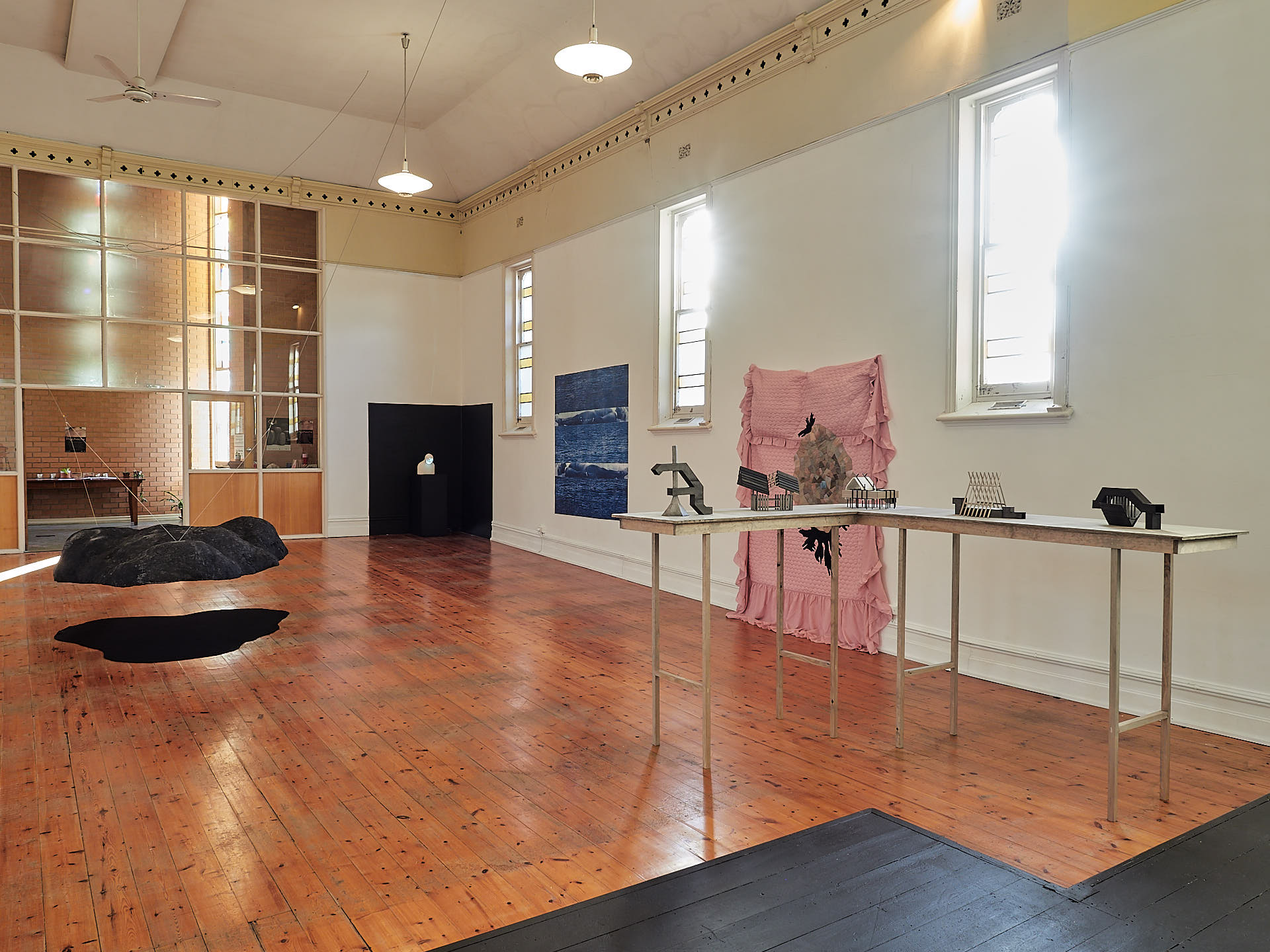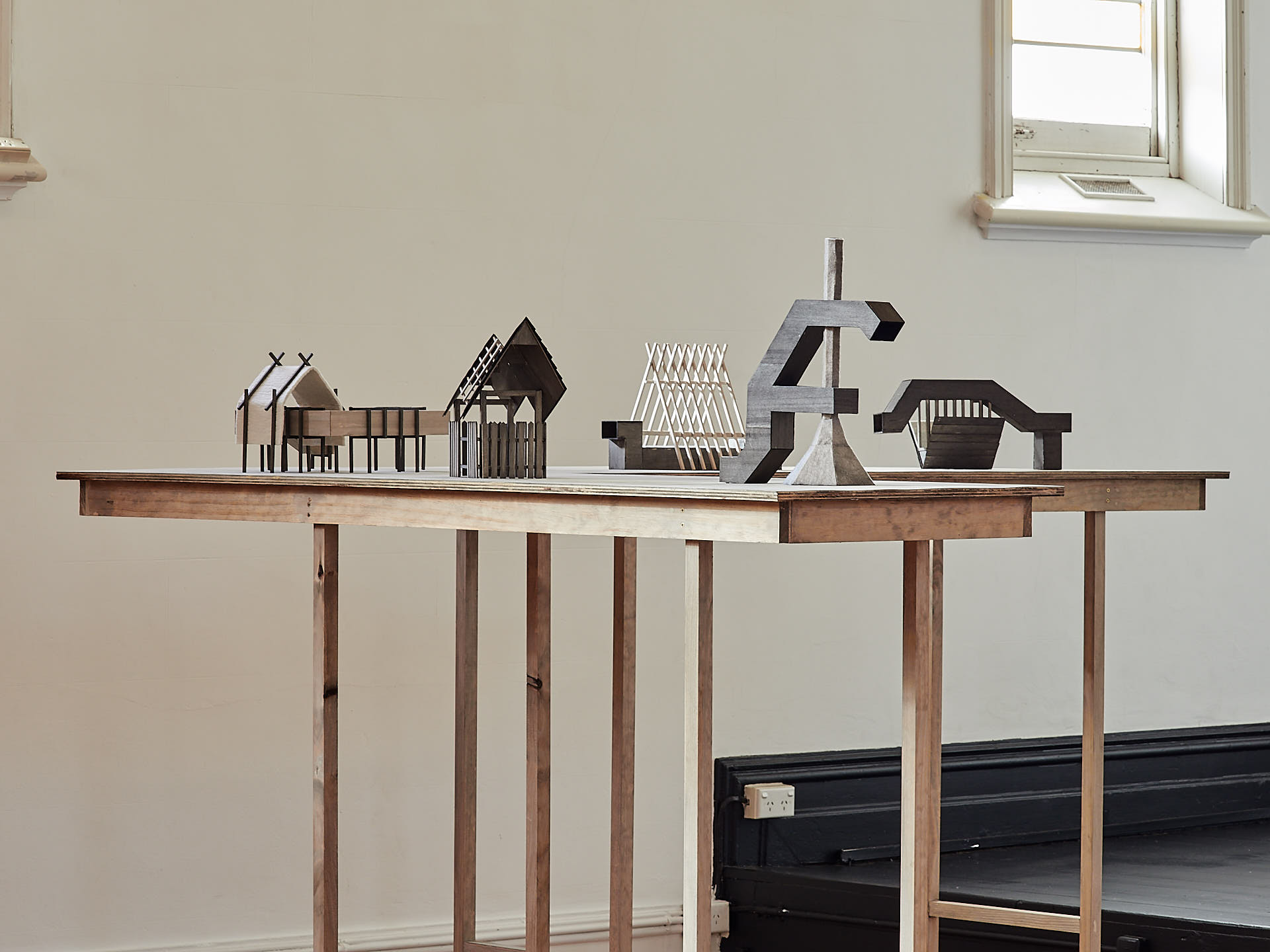 Psychache, Holy Rollers Studio Curated by Ray Harris and Adele Sliuzas Photographs by Sam Roberts The afterlife of things, balsa wood, ink, felt, thread, plywood, timber, fixings, 2018, dimensions variable