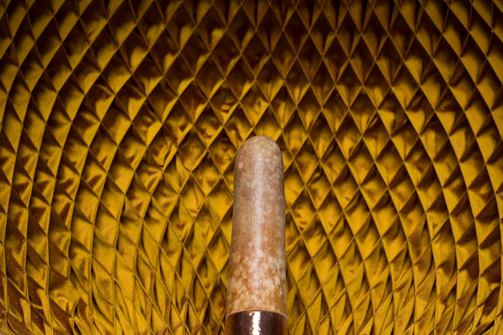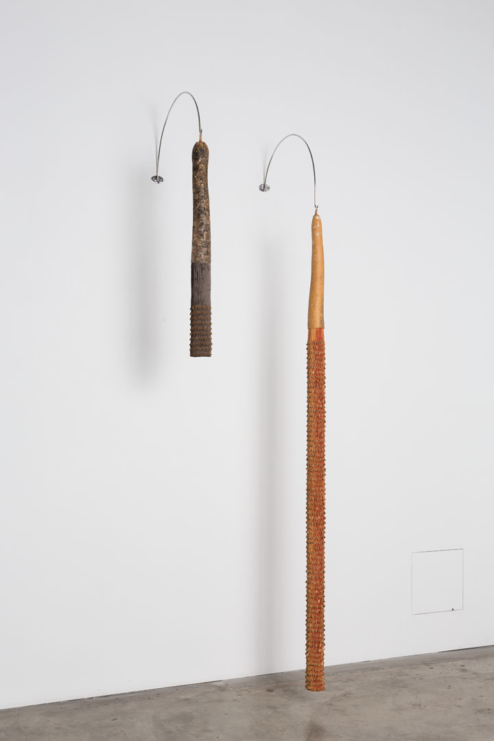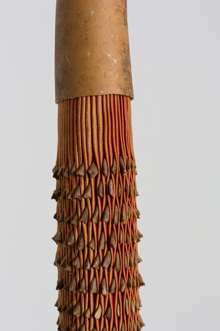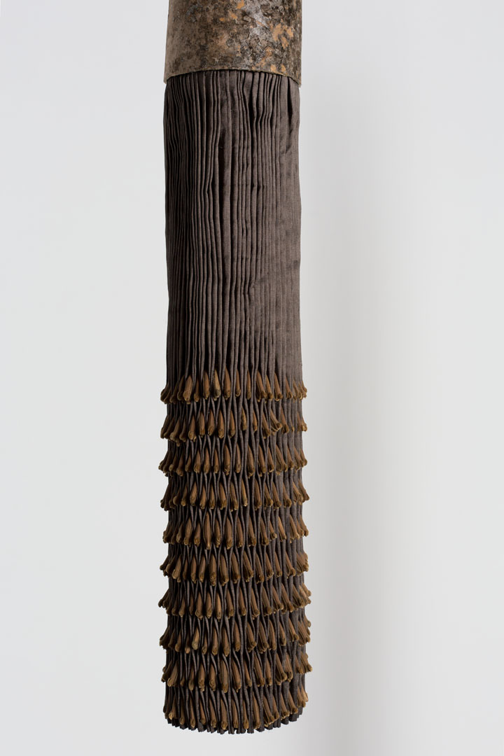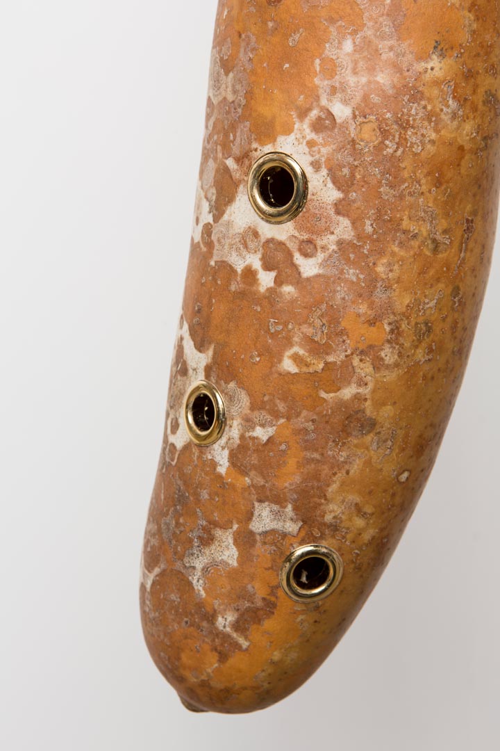 Like Rabelais, Robinson invokes the carnivalesque by means of grotesque realism in The Song of Master John Goodfellow. Overtly phallic gourds are at once concealed and revealed in an intricately smocked covering or an elaborately collared prophylactic sheath. And in a masterful act of inversion, two communing gourds are presented within an elegant stage-like structure – their top ends partially hidden from the viewer in an act of modesty, their copulating nether regions exposed for all to see. By deploying devices of corporeal cunning, Robinson imbues inanimate objects with anthropomorphic qualities.