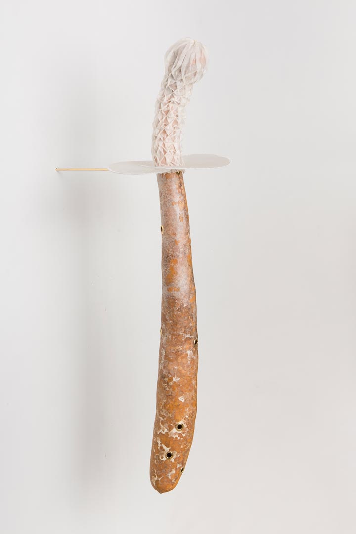Robinson’s work stems from an enduring interest in the varied responses humans have to sex and death, that are registered in ritual, religion, folklore, and fear. In this new body of work, Robinson deftly explores and exposes how we react to these phenomena. At one end of the spectrum we respond with celebration and openness; at the other, with concealment and repression. In The Song of Master John Goodfellow, Robinson reminds us that this dynamic of polarization is not something new.
